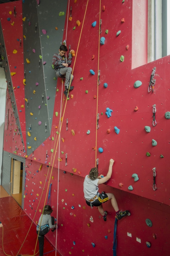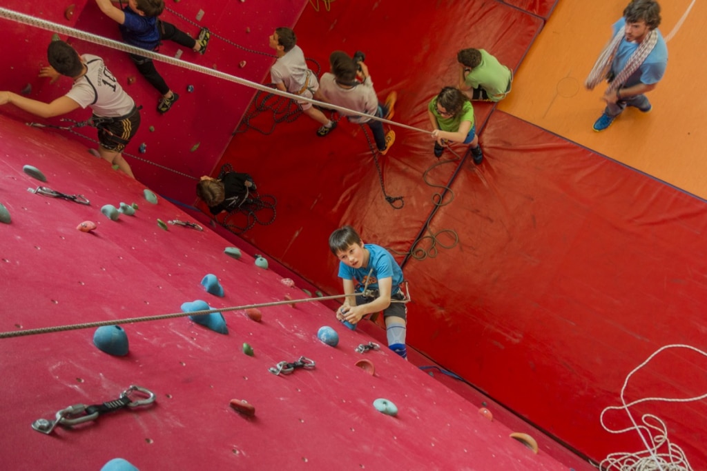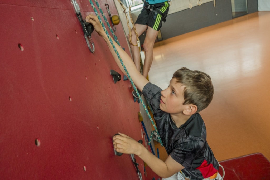 Die Kletter-AG ist offen für Anfänger und Fortgeschrittene von Klasse 5 bis 12. Ihr lernt an der Schulkletterwand euren Partner zu sichern und selbst im Toprope sicher nach oben zu kommen.